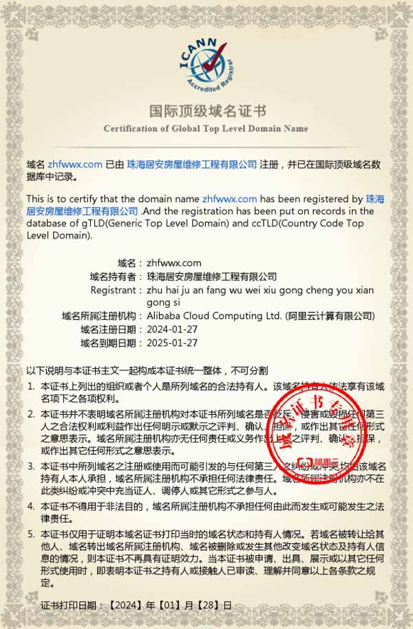 外墻維修工程服務(wù)企業(yè)資質(zhì)證書(shū)